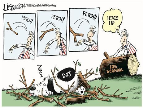 THE ATTORNEY GENERAL OF THE UNITED STATES, ERIC HOLDER, IS HEAD OF THE JUSTICE DEPARTMENT. SOUNDS GREAT, BUT THE MAN WHO HAS THIS TITLE IS DUCKING HIS RESPONSIBILITIES WHEN IT COMES TO THE MANY SCANDALS SWIRLING AROUND THE OBAMA ADMINISTRATION SUCH AS THE GROWING IRS SCANDAL. HOLDER IS REFUSING TO DO THE JOB THE SENATE CONFIRMED HIM TO DO AND IS LITTLE MORE THAN A TRAINED LAP DOG FOR BARACK OBAMA. CARTOON BY LISA BENSON